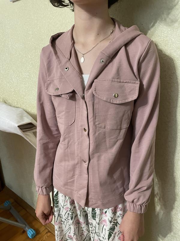 Пудрова сорочка 146р Стан - идеальный Можно надевать, как на голое тело, так и на футболку. Есть на кармане дефект- чуточку порованная, но если карман закрыт, то этого не видно (ена фото) Замеры: Длина-53 см Рукав-50 см Пог-43 см
