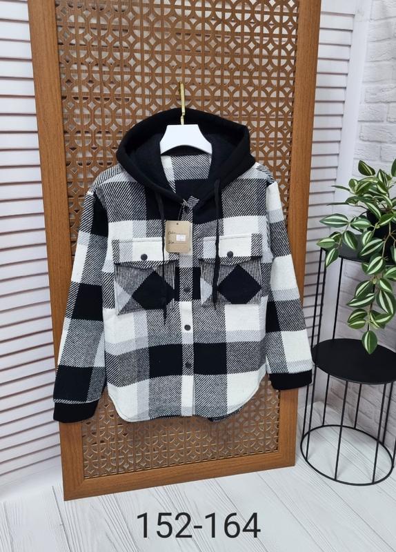НОВИНОЧКА🥰 Стильна сорочка для дівчинки Тканина плотна сорочкова, капюшон і манжети трьохнитка Застібається на кнопки В капюшоні робочий шнурок ЧУДОВА ЯКІСТЬ РЕКОМЕНДУЮ! ПОВНОМІРНІ 📍152 (3 шт )-довжина спереду 65, рукав від плеча 55, пог 45 📍158 (1 шт )-довжина спереду 67, рукав від плеча 58, пог 48 📍164 (14 шт)-довжина спереду 71, рукав від плеча 60, пог 50 +-1 см