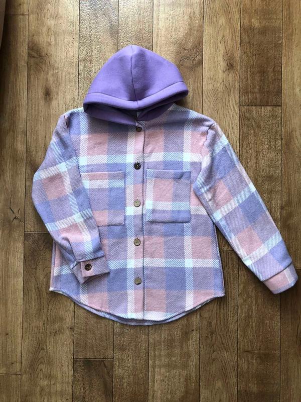 Тепла сорочка для дівчат з капюшоном. Застібається на гудзики. Тканина - твідова байка, капюшон - тринитка з начьосом, якість пеньє. Заміри: (рукав від горловини) 164 - довжина - 63см, напівобхват грудей - 49см, рукав від горловини - 67см.