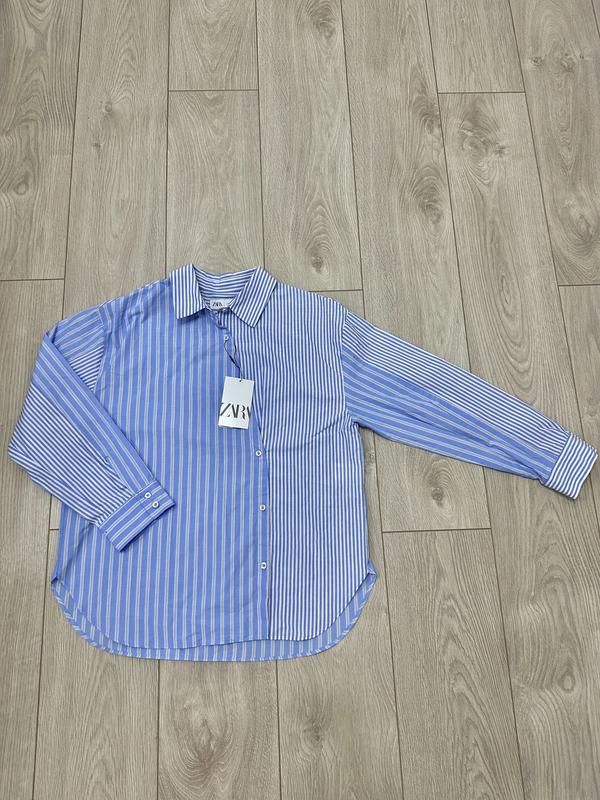 Рубашка с классическим воротником и длинными рукавами. Застегивается асимметрично на пуговицы спереди. Размер 13-14