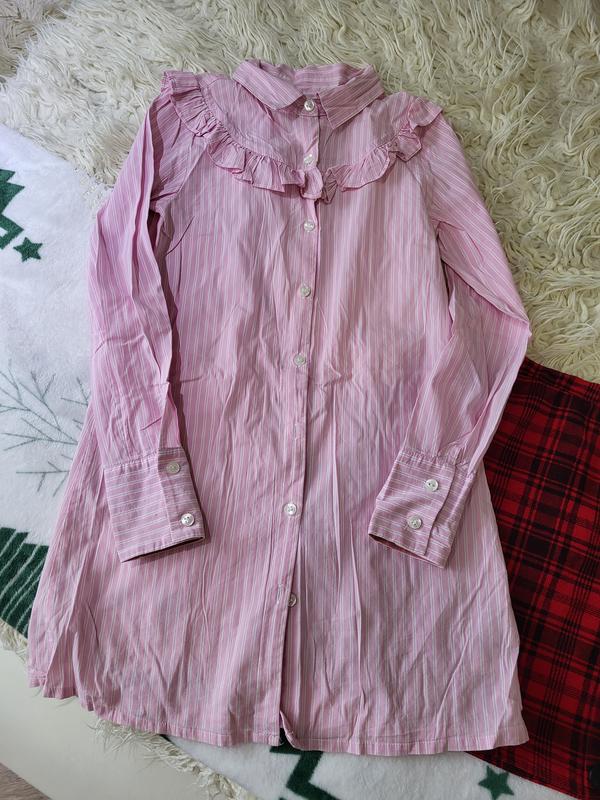 Подовжена сорочечка від next га 7/8 років. Довжина - 68 см. ПОГ - 33 см. ПОБ - 39 см. Рукав від плеча - 53 см. Плечі - 28 см. Тканинка тягнеться. СПІДНИЧКА В ПОДАРУНОК!