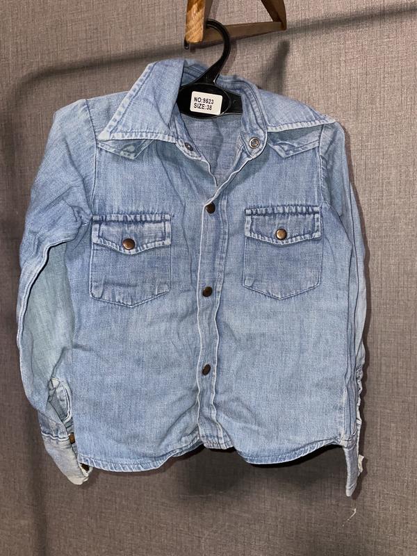 Красивая джинсовая рубашка, по бирке 110см Замеры: длина-39см,рукав-41см,напов обхват-32см