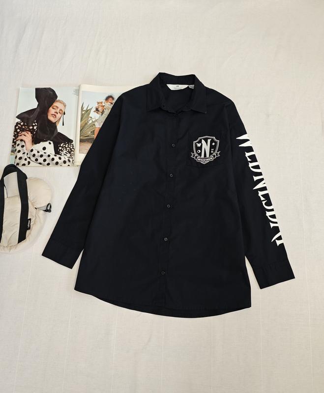 чорна сорочка оверсайз Wednesday від H&M для дівчинки 11-12 років, ПО грудей 49 см, довжина 71 см, рукав від горловини 69 см