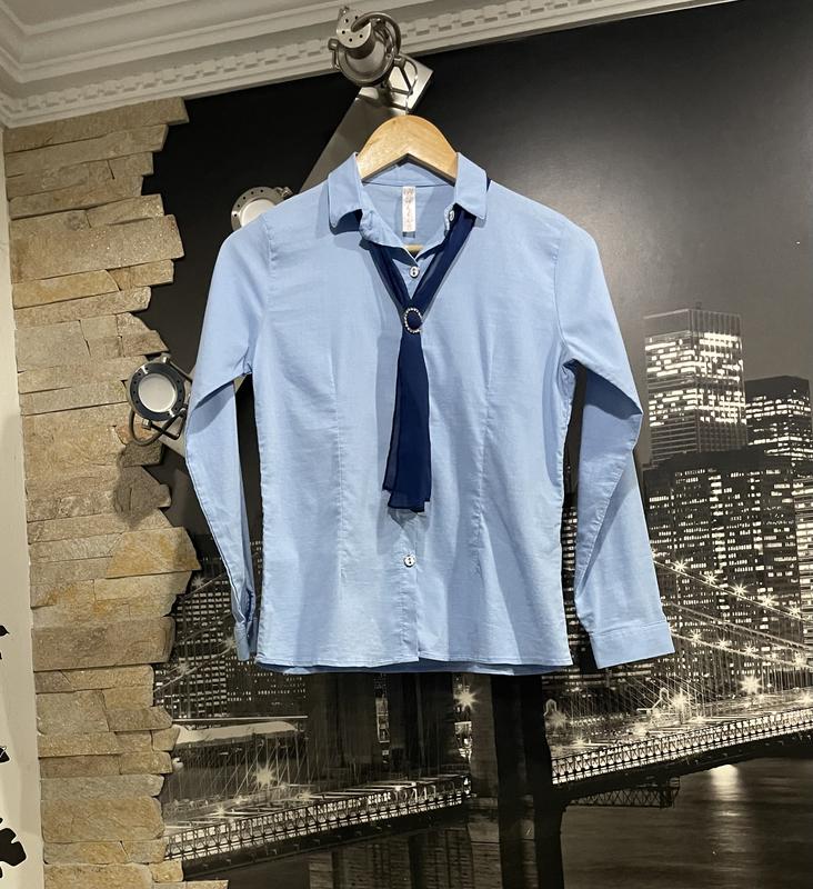 Красивая качественная рубашка блуза голубого цвета для девочки подростка с галстуком,размер 164,на 13 лет,ориентируйтесь по замерам, производству Турции,состав:95%хлопок,5%эластан.Стан идеален, одевала дочь пару раз.Замеры:ПОГ 43 см, плечи 35 см,длина рукава 54 см, длина по спинке 58 см.