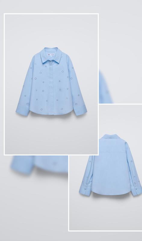 Рубашка с классическим воротником, длинными рукавами и застежкой на пуговицы спереди. Детали со стразами. в наличии размеры 📌 130 8-9 лет полуобхват груди 40 длина от плеча 52 длина рукава с плечом 55 zara оригинал с бирками