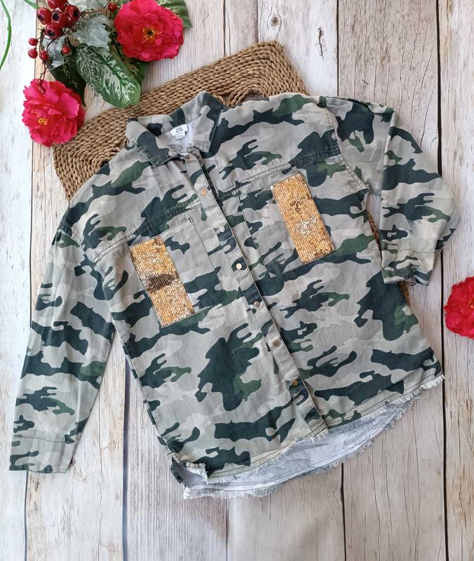 56💥классная рубашка, украшенная пайетками, плотность средняя, состояние идеально 📏11/12 лет, длина 59/65, пог 49, рукав от горла 62
