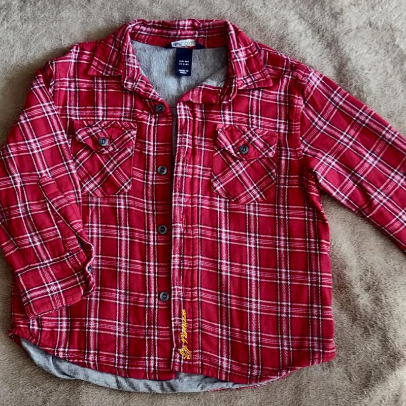 Фланелевая рубашка с подкладкой. Трендовая клетка. Подойдет и мальчику, и девочке. Размер 3-4 года. Состояние очень хорошее, без дефектов