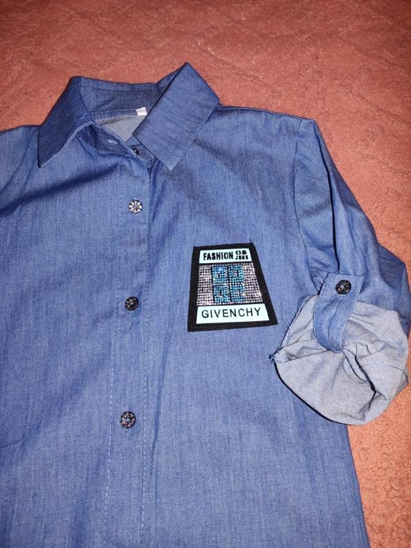 Новая джинсовая рубашка, ткань легкая, очень приятная к телу. Длина спереди 51, сзади 58. ОГ 37, рукав от плеча 48, плечи 34.