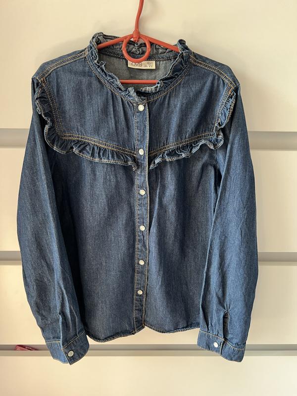 Джинсовая рубашка для девочки на рост 134см, в идеальном состоянии без дефектов)возможен торг