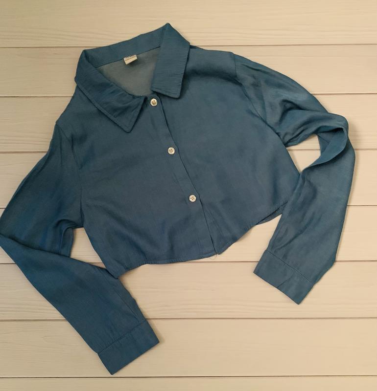 Гарна,стильна,укорочена рубашка-топ на гудзиках. Очень легкая и приятная к телу ткань. Красивый цвет