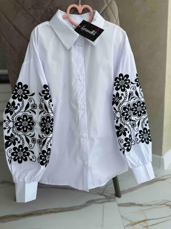 Рубашка в стиле вышиванки ткань коттон поплин Пуговицы по всей длине вышивка на рукавах ❇140-длина 55,рукав от горловины 58, пог 41 од.д. Р. кнв.