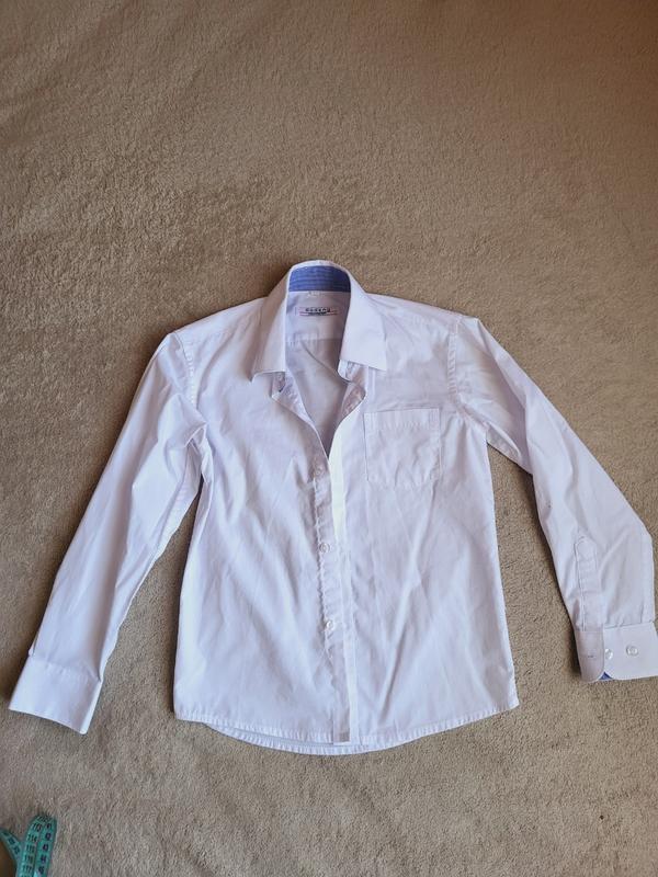 Классическая белая рубашка, ткань приятная к телу, размер 128, ориентируйтесь по замерам на фото, идеально в школу или на праздник