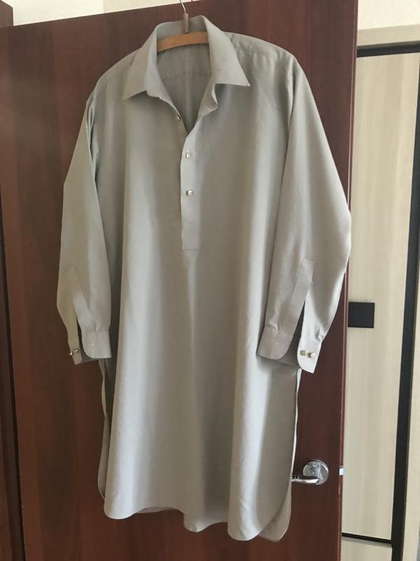 Сорочка туніка Колір сірий беж пастель Розміри 104 довжина 56 рукав спущений 58 пог 61 пот 61 низ Є два кармани Тканина котон з маленькою домішкою Не тягнеться Приємна на дотик Є примірка та повернення