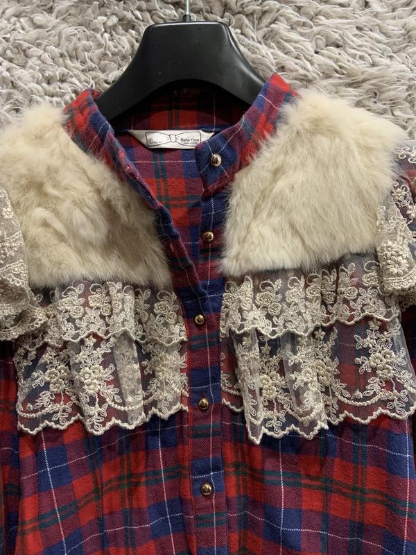 Оригінальна сорочка з натуральної тканини, оздоблена мереживом та хутром. Довжина 58 см Рукав 62 см ПОГ 46 см Приталена