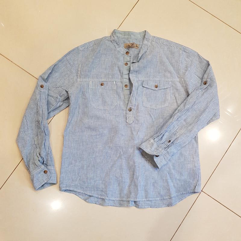 Рубашка H&M. Размер-13-14. Цвет-голубой/белый Смужка Льон/котон