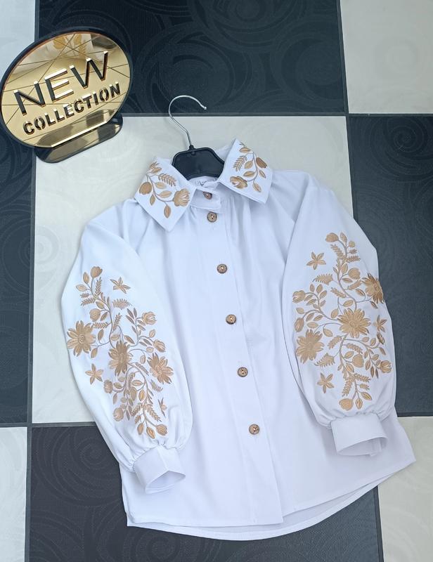 В наличии 🧡 Оригинальная рубашка в современном стиле с украинской вышивкой Рубашка свободного кроя Тканина креп Роуз Вышивка золотого цвета замеры:длин/рукав от горловины/погрудей 116-43/45/38 122-47/47/39 128-50/50/40 134-52/53/41 +-1 см
