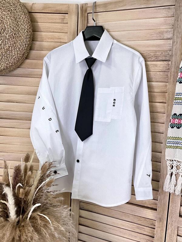 Рубашка с галстуком УНИСЕКС на пуговицах на рукаваз вышитая надпись тканина 100% котон производитель фабричный Китай СУПЕР КАЧЕСТВО! цена 805 грн рост/длина/пог/рукав от плеча похибка+-2см 146/61/49/48 152/63/50/49 158/65/52/51 164/66/53/53 170/68/54/55 ▪️N-15