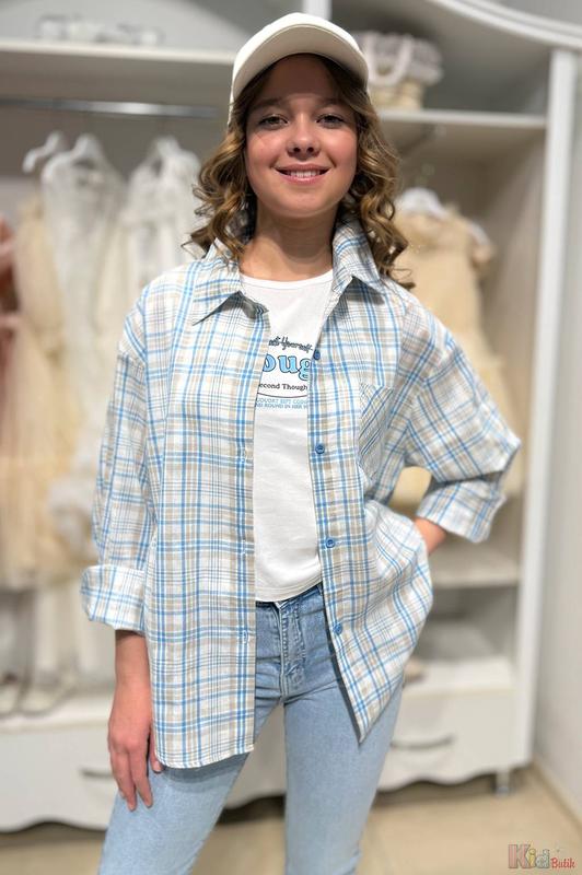 Комплект (рубашка в клетку и майка с принтом) для девочки подростка Турция Состав: хлопок Размер 152, 158, 164 95032