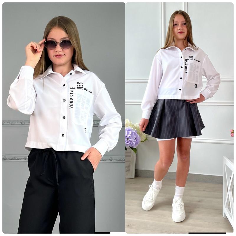 Крутая рубашка с надписями для модниц Ткань супер софт отличного качества Застегивается на пуговицы РЕКОМЕНДУЮ замеры:длин/рукав от горловины/п********** 140-40/60/40 146-42/62/42 152-43/64/44 158-46/67/47 164-48/70/50 +-1 см Girl