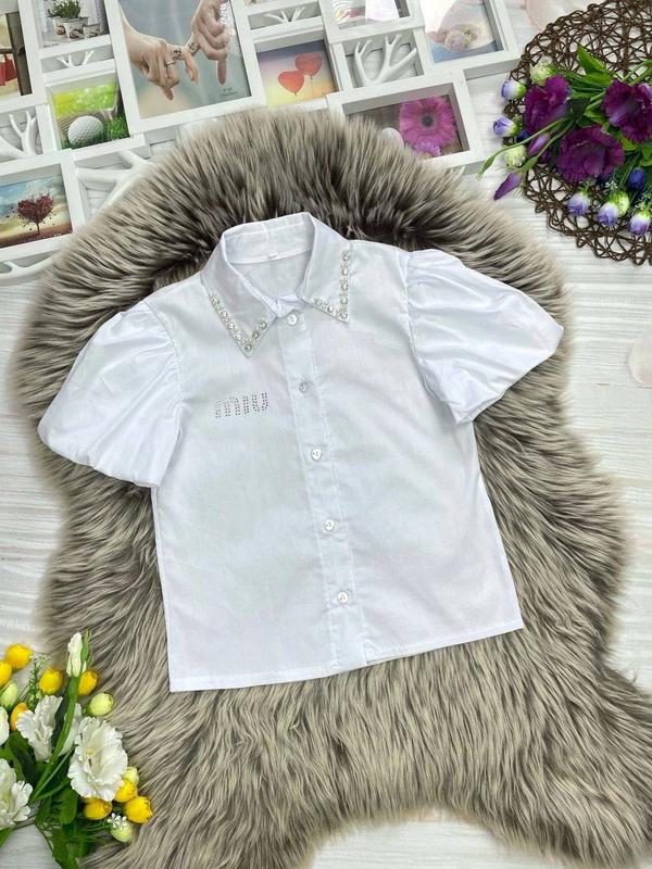 Інст babystore__clothing Нарядна блуза для красунь тканина котон, комірець оздоблено бусинками Заміри: довжина/пог 116 - 41/33 122 - 43/35 134 - 47/38