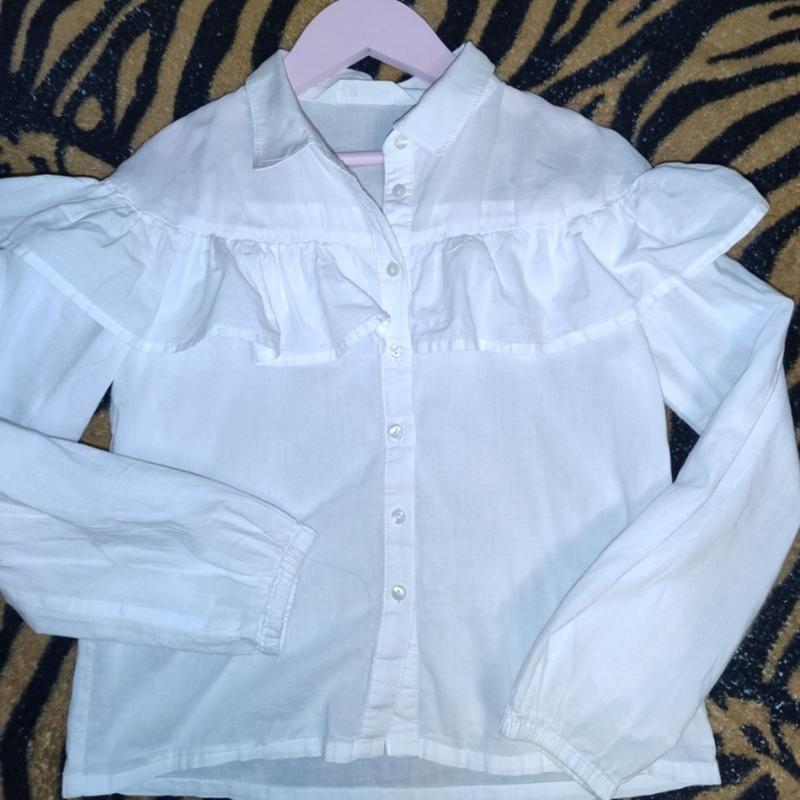 Стильная, фирменная рубашка из натуральной ткани с рюшами, опрятная, такая как у всех.
