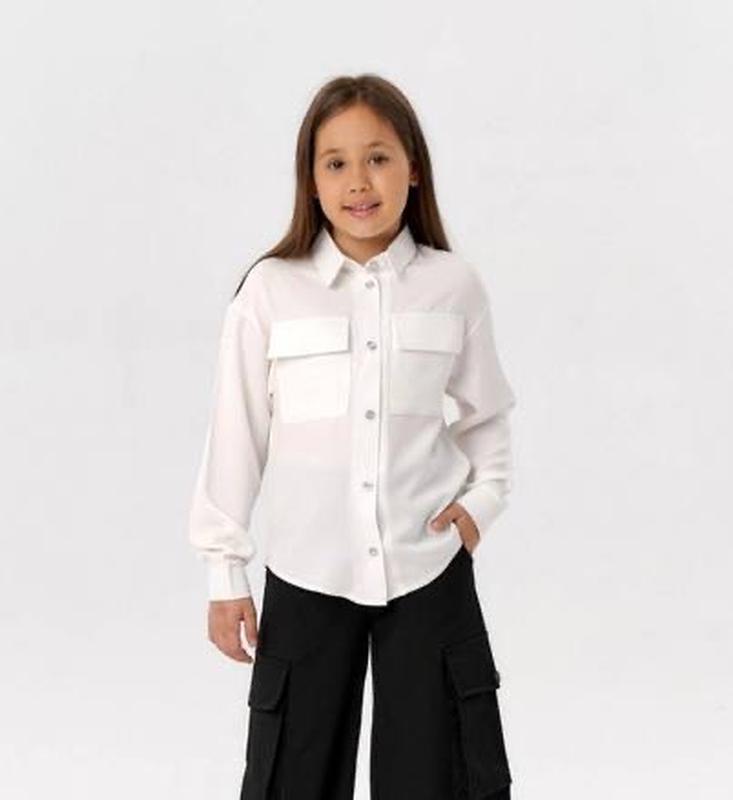 🥰🌺Стильна та трендова сорочка для школи з акцентом на оригінальні кишені. Практичність у поєднанні з модним дизайном. •Мод 151 •Тканина:супер софт •Розміри:128,134,140,146,152,158 ❤️🔥 Легко поєднується з будь-яким низом та справді додає легкості щодня.