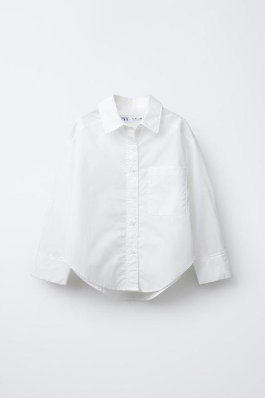 Белая поплиновая рубашка для девушек от Zara - Отличное качество. - Рубашка изготовлена из 100% органического хлопка. - Спереди на пуговицах, опущенные плечики, скругленный низ, удлиненная закругленная спинка. - Спереди на груди карман. В наличии размер: 140 (на 9-10 лет) Замеры: 140 - длина по спинке - 62,5 см (перед короче на 4 см); ширина в плечиках - 45 см; длина рукавчика от плеча - 46 см (от горловины - 62,5 см); ширина в груди (под проймами) - 47 см.