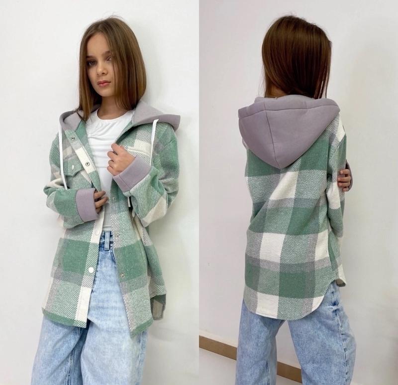 через кнопку купити тільки повна оплата!!! Арт 6053 Стильна сорочка Саме те, ще потрібно на любий образ Тканина щільна сорочкова капюшон і манжети тринитка Застібається на кнопки В капюшоні робочий шнурок Супер якість зріст/довжина попереду/пог/рукав від горловини похибка +-2см 152/65/47/70-2шт 158/67/50/72-3шт 164/70/51/75-3шт ------- Тан