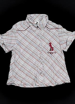 Очень классная, красивая рубашка на девочку пяти лет в отличном состоянии. Длина изделия по спинке от плеча 41 см, полуобхват груди 32 см. Ткань хлопок, немного тянется. Модель 7023