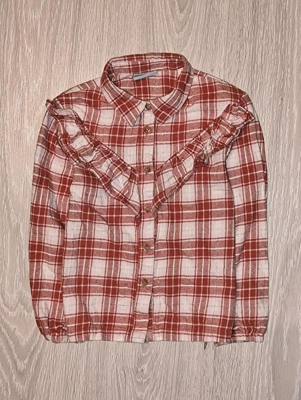 Фирменная, теплая рубашка на 8 лет. Застегивается на пуговицы. Ткань 99% хлопок и 1% металлизированные волокна. Состояние отлично Замеры: длина по спинке от плеча 46,5 см, ширина между подмышками 35,5 см, плечи 32 см, рукав от плеча 41 см, по внутреннему шву 30,5 см