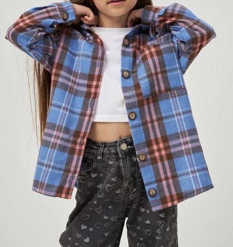 тканина фланель сорочкова (тонка не груба) застібається на гудзики доповнить любий образ Заміри: довжина/пог/рукав від плеча 116 - 49/ 44/ 41 122 - 52/ 44/ 42 128 - 54/ 45/ 46 134 - 56/47/47 140 - 57/48/49