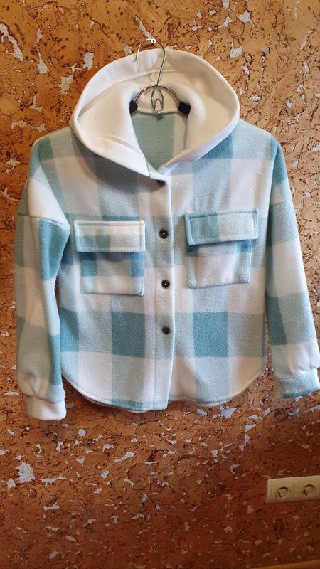 Теплая рубашка на пуговицах на девочку 11 лет Ткань-плотный флис Имеет 2 накладных кармана Капішон-двунитка Стан - идеальный Длина спереди-59см Длина по спине-63см ПОГ-51см Рукав реглан-длина от плеча-63см