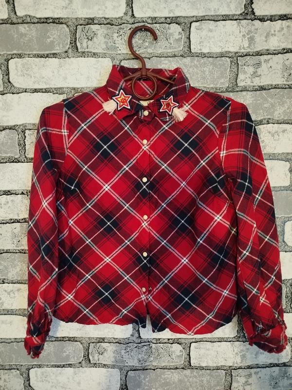 Яркая рубашка-блуза для девочки 8-9 лет. 💯 бавовна. Типа байечки. Интересный дизайн и удобство.На кнопках, состояние супер.. Плечи 32 см Рукав от плеча 48 см Груди 43 см Высота 45 см