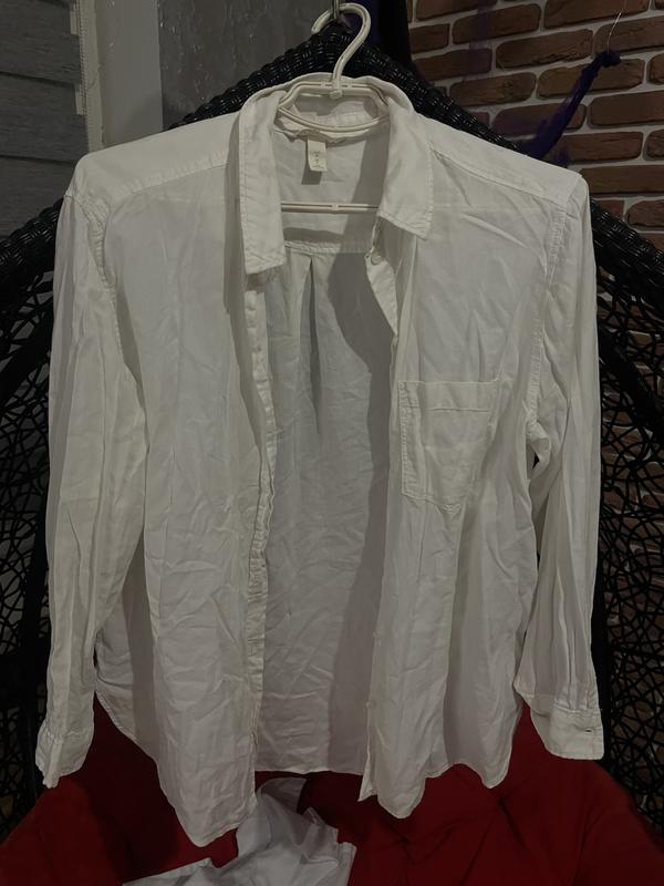 Біла сорочка Класична біла сорочка з легкого, приємного до тіла матеріалу. Має вільний крій, комірець і застібку на гудзики. Ідеально підходить як для повсякденних образів.