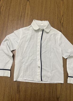 Шкільна сорочка для дівчинки! Можна на перший чи другий клас, залежить від дитини! Ідеальний стан! Біла у дрібний темно синій горошок!