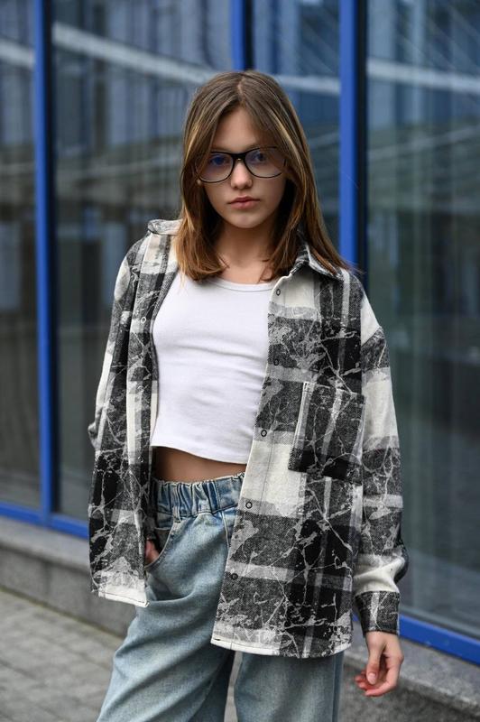 🌪️Трендова сорочка ОВЕРСАЙЗ з кашеміру з ексклюзивним окрасом 🌪️ ‼️№2588‼️ Тканина - турецький КАШЕМІР з додаванням натуральної бавовни із мармуровим окрасом. Високої якості не линяє,  не скочується. 🔴Високої якості пошиття🔴 Колір - чорний Розміри:152-158