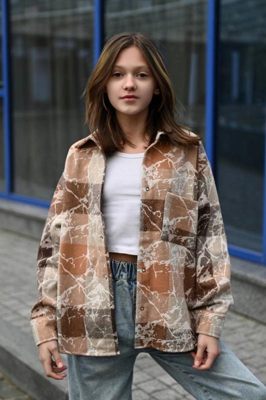 🌪️Трендова сорочка ОВЕРСАЙЗ з кашеміру з ексклюзивним окрасом 🌪️ ‼️№2588‼️ Тканина - турецький КАШЕМІР з додаванням натуральної бавовни із мармуровим окрасом. Високої якості не линяє, не скочується. 🔴Високої якості пошиття🔴 Колір - коричневий. Розміри:146-152,152-158,158-164,164-170