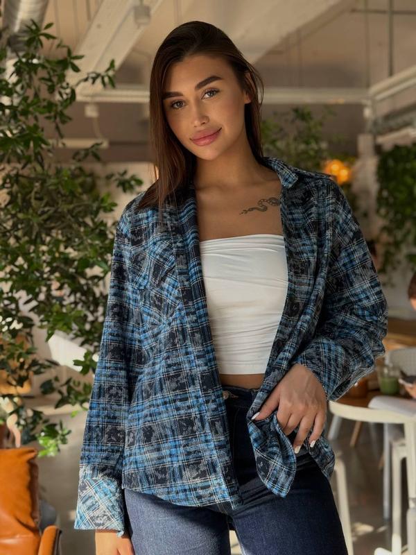 Нова колекція! Стильна фланелева сорочка оверсайз ( підходить на розмір XS S M L - твій must-have цієї осені * Тканина: фланель-варенка з м'яким начісом + Склад: 100% бавовна - дихає та приємна до тіла • Розмір: універсальний оверсайз Кольори: шоколад та блакитна ~ Ідеально підходить для щоденного образу: носи з джинсами, шортами чи навіть поверх топу!
