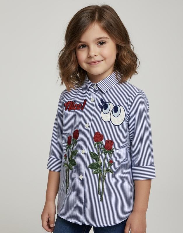 Сорочка/рубашка у полоску дитяча з вишивкою