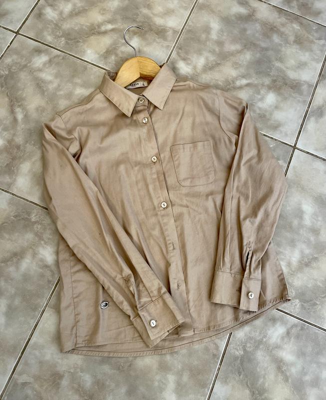 Стильна рубашка з довгим рукавом Довжина рукава - 48,5 см Півобхват грудей - 38,5 см Довжина сорочки - 52 см, сзаду - 54 см Склад: 97% хлопок, 3% еластан