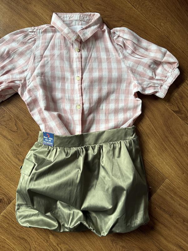 Спідничка - одуванчик (волан)на підкладці Колір хакі (тканина наче трішки блистить) Нова з бірками Пояс на утяжці Розмір 116 , 6 років але брала на рост 134 9-10 років Довжина 30 см Пояс напівобхват 30 Ціна 175 грн Сорочка блуза Zara Рост 128 реально на 134-140 Довжина по спинці 43 см Напівобхват грудей 37 см Ціна 150 Комплектом -300 грн Поки товар на сайті, він у продажу! Відправка протягом 1-3 днів. Доставку оплачує отримувач (вартість доставки за тарифами Нової пошти). Обов’язково, під час отримання посилки, перевіряйте її цілісність на пошті. В разі пошкодженості упаковки чи товару зверніться, будь ласка, до працівників пошти! Якщо товар не підійшов одразу оформлюйте повернення на пошті. Замовлення відправляю тільки по безпечній оплаті через шафу-це і ваша і моя безпека! ДОДАТКОВІ ФОТО НЕ РОБЛЮ! Ціна остаточна! Дивіться всі мої оголошення - розгружаю шафу (є і дитячі і дорослі речі) та оформлюйте замовлення безпечною оплатою😊💕 Мирного неба Вам🇺🇦