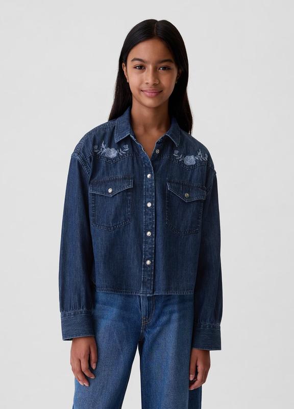 Джинсовая рубашка GAP. Джинсовая рубашка с вышивкой на девочку от GAP. Отложной воротник. Длинные рукава с манжетами на кнопках. Застегивается на кнопки. Спереди рубашка украшена вышивкой. Два нагрудных кармана с клапанами на кнопках. Закругленный подол. Отличное качество Размеры: размер M, рост 130 см размер L, рост 137-145 см размер XL, рост 145-152 см размер XXL, рост 152-170 см В Киеве самовывоз и примерка возможна в рабочие дни с 9.30 до 18.00. В небольшом и уютном шоуруме поможем подобрать Вам именно то, что нужно! Отправка Новой Почтой и УкрПочтой ежедневно. Доступен наложенный платеж без предоплаты. Курьерская доставка по Киеву.