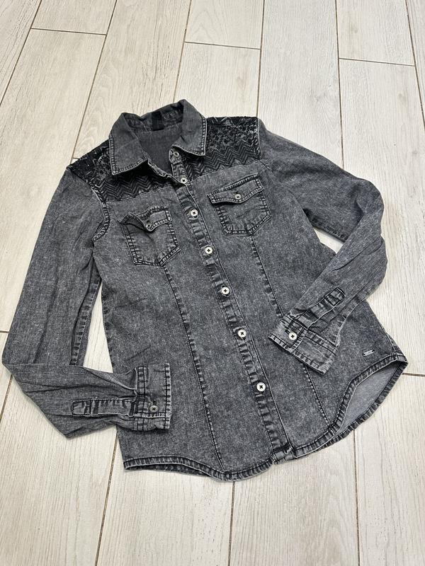 Стильна джинсова сорочка на 11-12 років. Довжина 52, ширина 37, рукав 52 . Стан відмінний . 🔥Ціна 160🔥