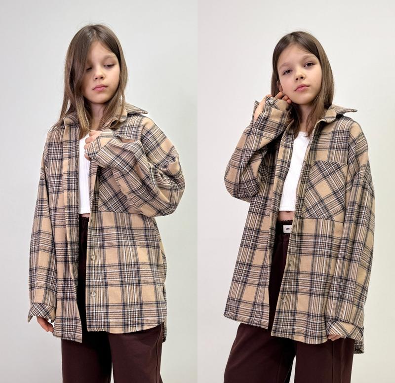 через кнопку купить только полная оплата!!! арт 7276 Рубашка в клетку крой овер на пуговицах с кармашком тканина мʼякенька фланель Супер качество! рост/длина по переду/пог/рукав от горловины похибка+-2см 140-146/64/52/61-1шт 146-152/66/54/64-1шт 158-164/70/57/69-1шт 164-170/73/58/72-2шт Тан