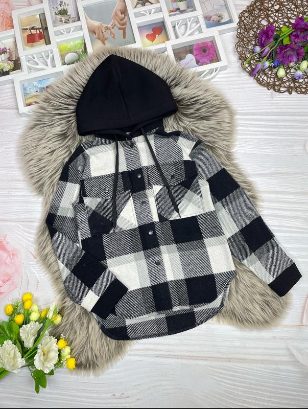 через кнопку купить только полная оплата Тепла стильна рубашка Ткань качественный турецкий твид, капюшон и манжеты трехнитка с начесом Застегивается на кнопки Замеры: длина спереди/рукав от плеча/пог 134-57/48/39 152-65/55/45