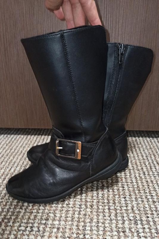 Красивые сапожки на девочку Clarks (Кларкс). Материал - натуральная кожа. Очень качественные, удобные, современные и красивые. Сапожки на молнии. Легко обувать и снимать. Износостойкая подошва из не скользящего материала. Размер 28 (по стельке 18 см). UK 10 G. Все в очень хорошем состоянии. Без дефектов. Отвечу на все вопросы. Сделаю дополнительные фото по запросу.