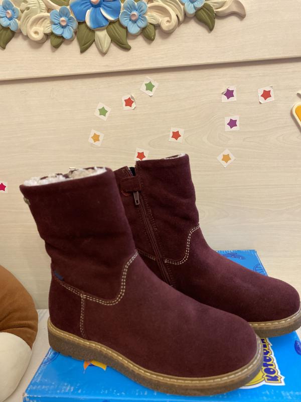 Зимові чоботи, за літо ножка виросла, так і не одягали. Замш, всередині хутро. Фірма Richter, довжина стільки 18,6 см