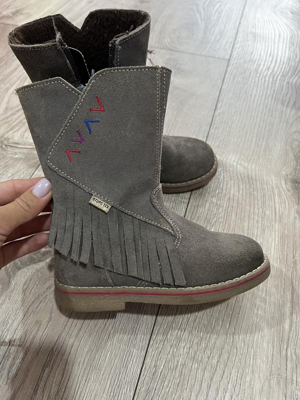 Дитячі ботинки, типу козачки. Шкіра. Стан ідеальний, виглядають як нові. Дуже гарно і стильно дивляться на ніжці. Розмір 26.