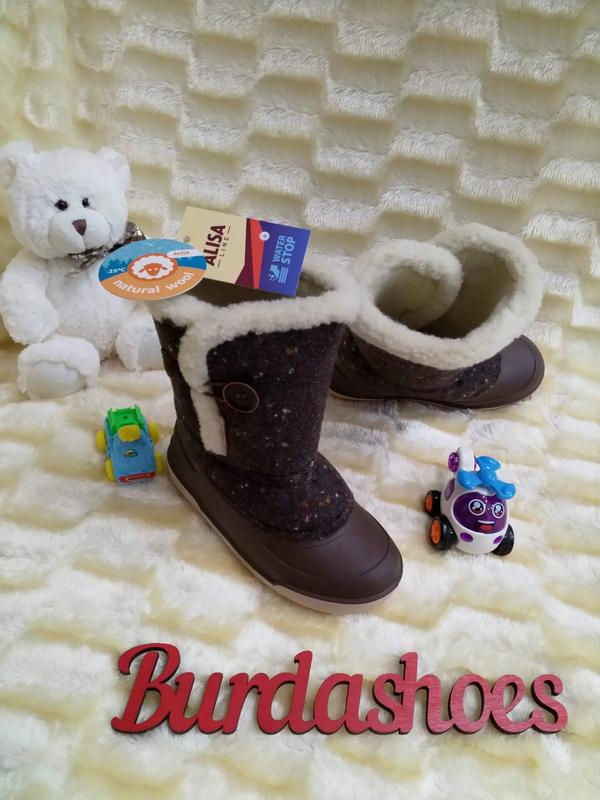 Внутри 100%овчина, водонепроницаемый материал. Очень теплые,набиты овчиной. Производитель: Alisa Line. Выдерживают до - 25 мороза. Аlisa Line - первый в Украине сертифицированный производитель детской обуви! (star)(star)(star) 1. Температурный режим -5... -25 градусов.(snowflake) 2. Внешний мембранный водоотталкивающий материал.(droplet) 3. Натуральная овечья шерсть по всей внутренней поверхности - позволяет ножке дышать и хорошо отводит испарения!(sheep) 4. Амортизационные свойства подошвы снижают утомляемость.(zzz) 5. Широкое голенище с надёжными фиксаторами, которое легко обувать.(like) 6. Специальный внутренний пористый слой подошвы с дополнительной термоизоляцией и отводом испарения от ступни. (trophy) 7. Материал подошвы SEBS - специальный лёгкий термоизоляционный каучук - такая подошва очень прочная и не теряет эластичность даже при -50 градусах. НЕ СКОЛЬЗИТ и НЕ ПРОМОКАЕТ!(cloud)(rain)(tornado) 26/27 ( 17.7 см по стельке) 28/29 (18.7 см по стельке)