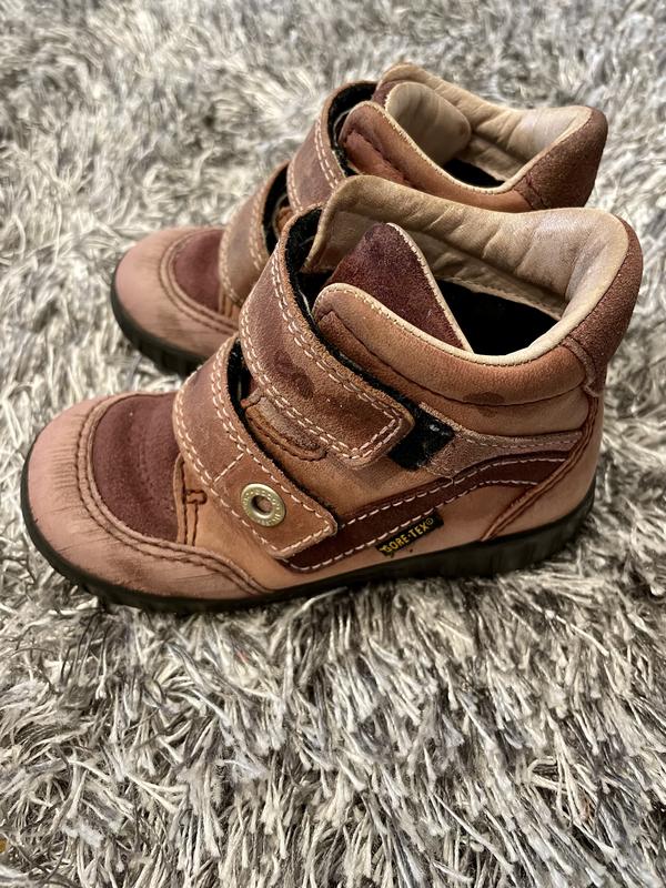 Черевики Екко оригінал після 2-х дітей. В дуже гарному стані. Не промокають, зручні. Липучки працюють ідеально. Система gore-tex. Устілка- 15,7 см. Розмір-24. До комплекту є жилетка.